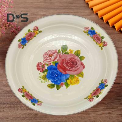 Speiseteller aus Porzellan, großes Fassungsvermögen, Blumenmuster, anmutige Vorspeisen-Essensausgabe, Emaille-Schale, Küchenzubehör