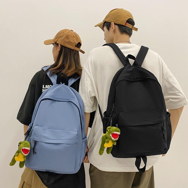 School bag college students solid color simple junior high school students Korean version daily large-capacity street backpack