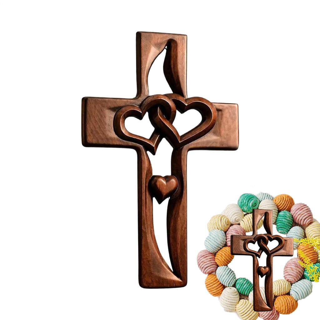 Handgefertigtes Holzkreuz in Herzform, verschlungen, handgeschnitzt, ausgeschnitten, Hochzeitskreuz, Heimdekoration für Paare, Ehepartner
