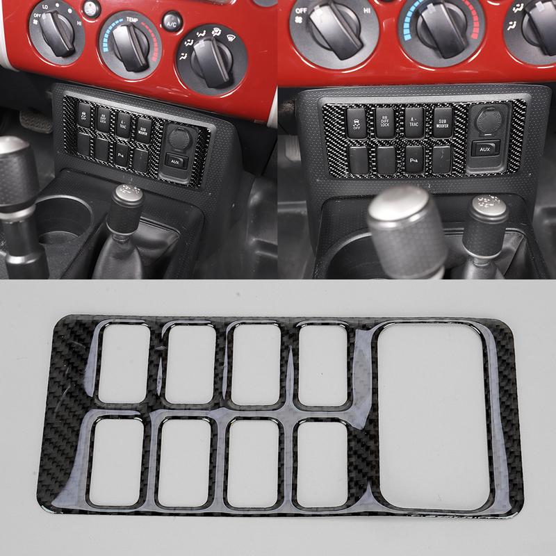 Front Central Console Button Panel Cover Trim Fit for Toyota FJ Cruiser 2007 2008 2009 2010 2011-2014 LHD Black Carbon Fiber