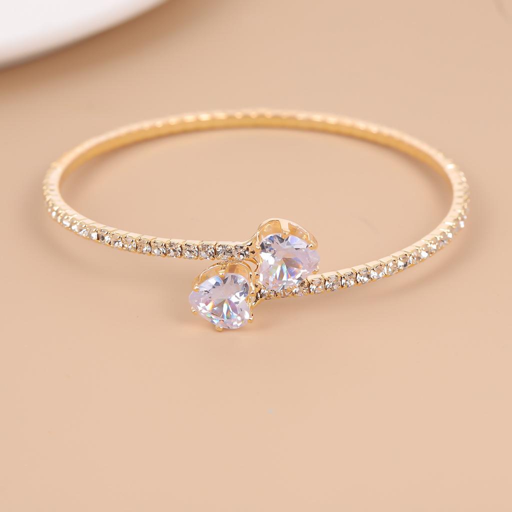 European and American fashion alloy jewelry, 1 single row peach heart rhinestone pearl bracelet, women's open mouth bracelet, one piece