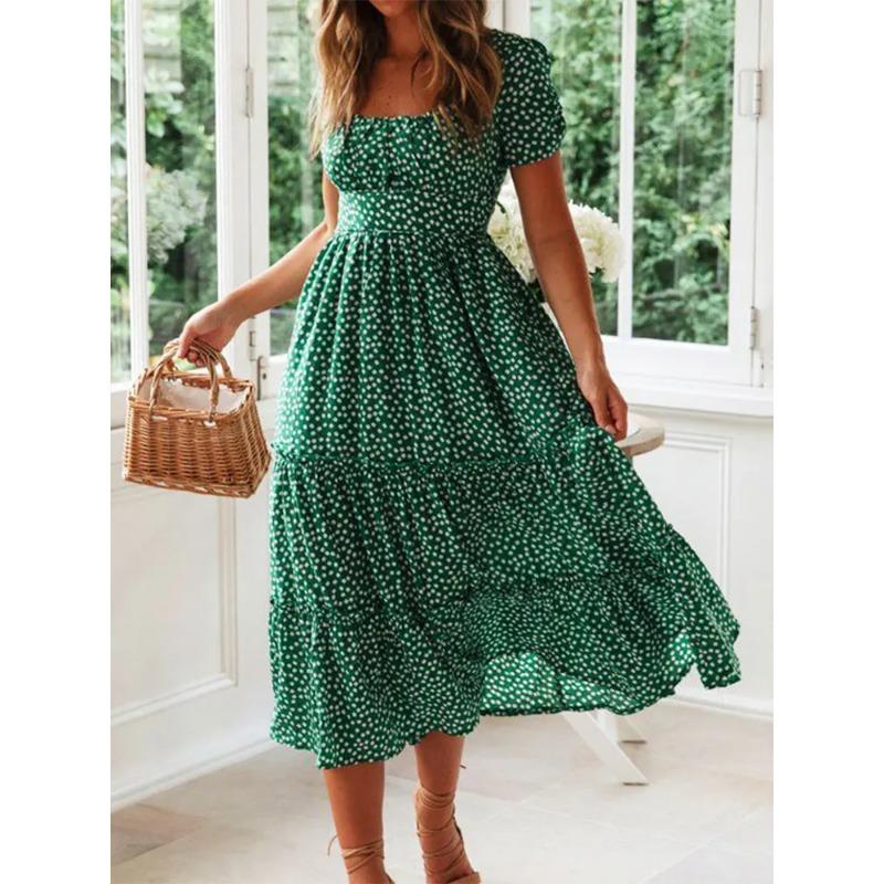 Vestidos Vintage Vintage Print Puff Sleeve Summer Beach Sweet Dresses Casual Square Collar Floral Maxi Long Dress