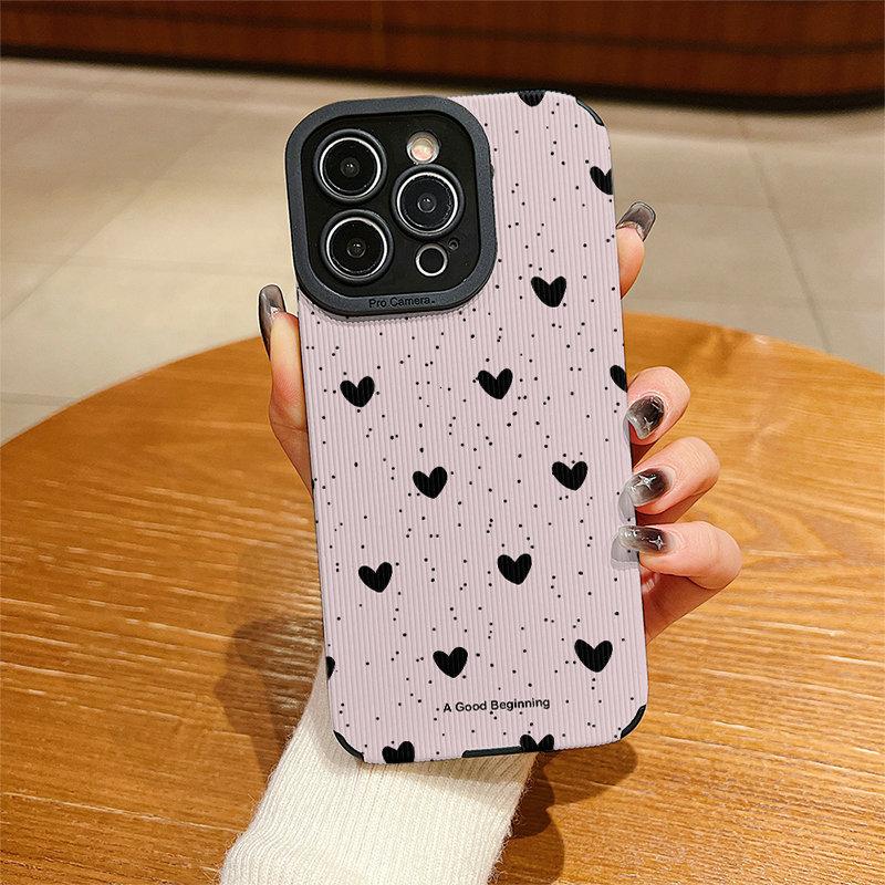 Vertikale Lederhülle Herzform Bedrucktes Muster Stoßfeste Weiche Silikonhülle mit Kameraschutz Vollständiger Schutz für IPhone Samsung