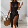 Sommerurlaub Sexy Einfarbig Rundhals Ärmellos Gestrickt Strand Sonnenschutz Überwurf Bequemes Kleid Leicht Elegant Schmeichelhaft Schickes Kleid