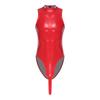 Herren Glänzender PU Ärmelloser Stehkragen Beutel Bodycon Bodysuit Dessous