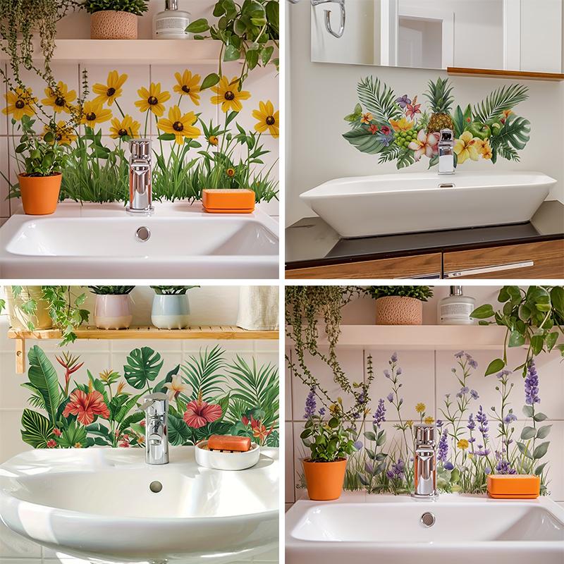 Frisches Blumendekor Spülbereich Hintergrundwand Aufkleber Badezimmer Wanddekoration Selbstklebend Abnehmbar Wasserdicht Kreativer Aufkleber