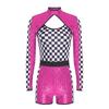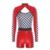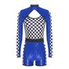 Damen glitzernder pailletten karierter Patchwork Rennfahrer Overall