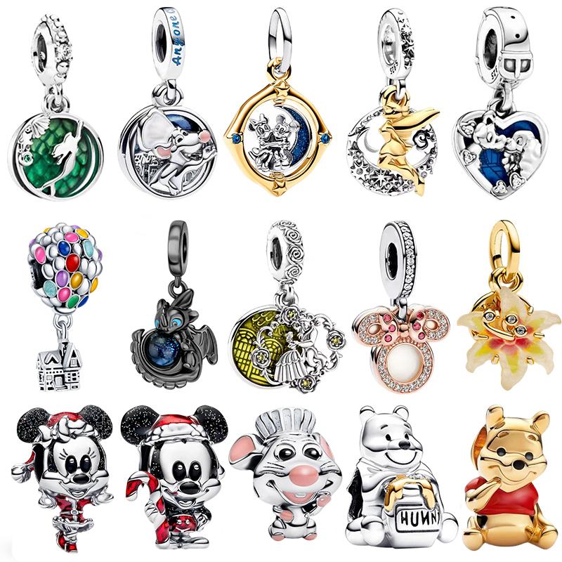 Disney 925 Silber Minnie Stitch Winnie Puuh Anhängerperle geeignet für originales Damenarmband DIY Schmuck Geschenk
