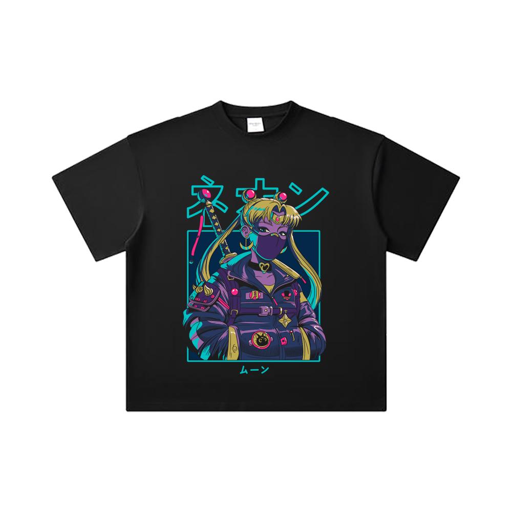 260 GSM Double Yarn 32 Count 100% Cotton Sailor Moon V11 Cyberpunk Print Unisex Heavy Cotton T Shirt