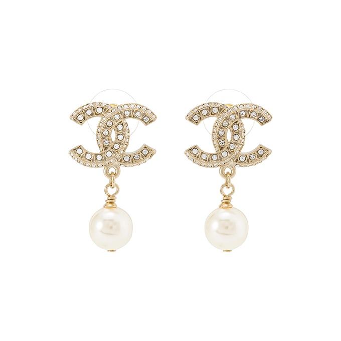 Chanel Doppel-C-Logo Metall Perlenohrringe Damenohrringe Gold A86506