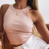 Ärmelloses Damen Crop Top Fitness Weste - Atmungsaktive Nahtlose Gestrickte Sportbekleidung, Einfarbig Gerippte Weste, Lässiges und Elegantes Ärmelloses Basic Sommer Top