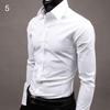 Dieses Hemd hat eine Knopfleiste, einen Kentkragen und lange Ärmel.