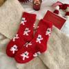 Weihnachtsjahr Rote Socken Damen Herbst und Winter Fleece Verdickt Nerzfleece Cartoon Niedlich Damen Socken Flauschig Mittellange Socken Damen