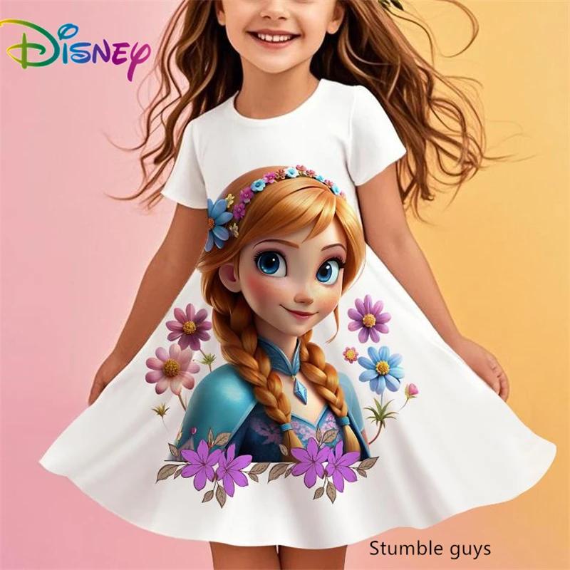 Disney Frozen Princess Elsa Girls Summer Dress Anime Kids Dresses Clothes Skirt Fashion Casual Outfit