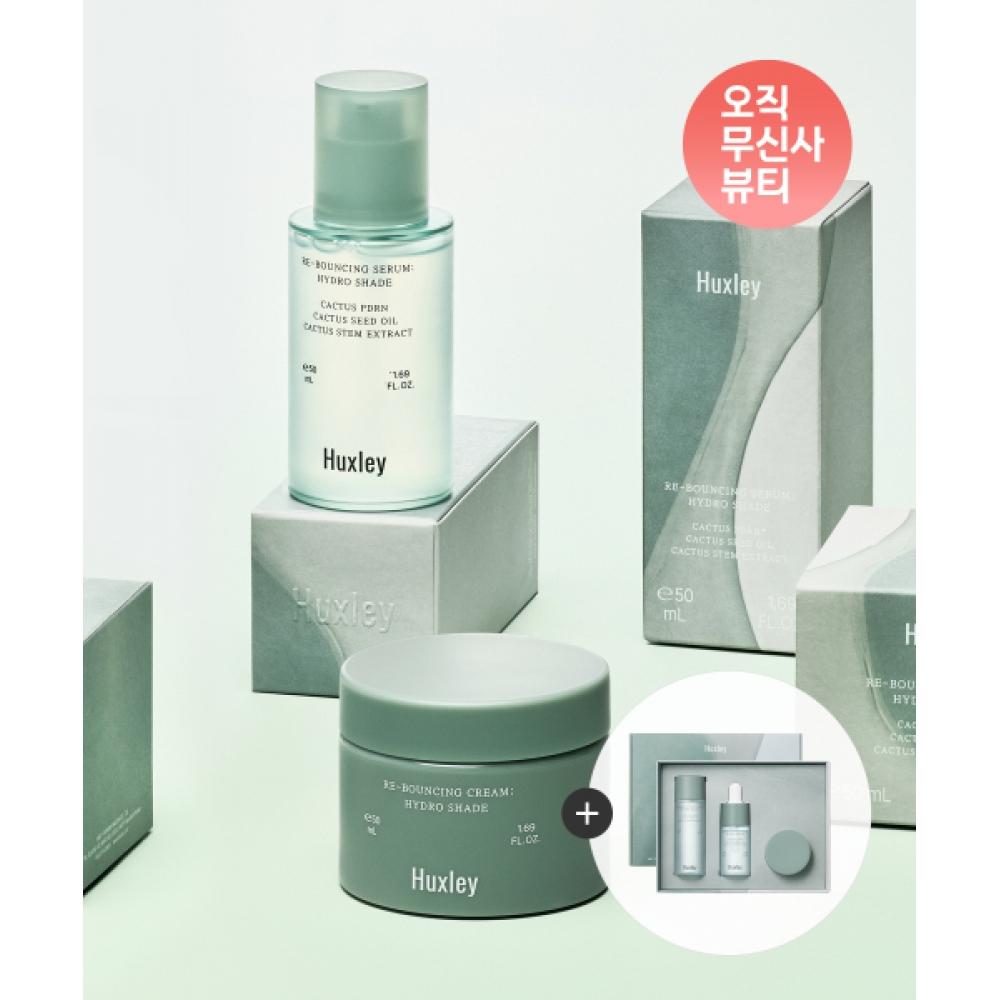 HUXLEY [Deluxe Trio Geschenk] Rebounding PDRN Serum + Creme SET bietet optimale Lösungen für Hautpflege und Feuchtigkeitspflege. Dieses Set enthält das Rebounding PDRN Serum und die Creme, die die Haut schnell mit Feuchtigkeit versorgen und die Hauttextur verfeinern.. Es enthält fermentiertes Wasser, das aus biologisch angebauten Kakteen in Marokko gewonnen wird, und ermöglicht dem Benutzer, die Kraft natürlicher Inhaltsstoffe zu erleben.