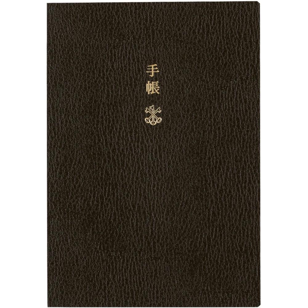 Der Hobonichi Note 2026 Hauptplaner ist ein Planer im A6-Format, dessen Seiten alle auf Englisch gedruckt sind.. Sein elegantes anthrazitgraues und rotes Design enthält nützliche Bonusseiten. Der Einband hat eine matte Haptik, geprägt mit den Kanji '手帳' und einem Schlüsselsymbol, während der Buchrücken das 'HOBO-Logo' und den Text '2025' trägt.. Der Planer ist für den täglichen Gebrauch konzipiert, mit einer Seite pro Tag, beginnend mit einem Kalenderformat von Montag bis Sonntag.