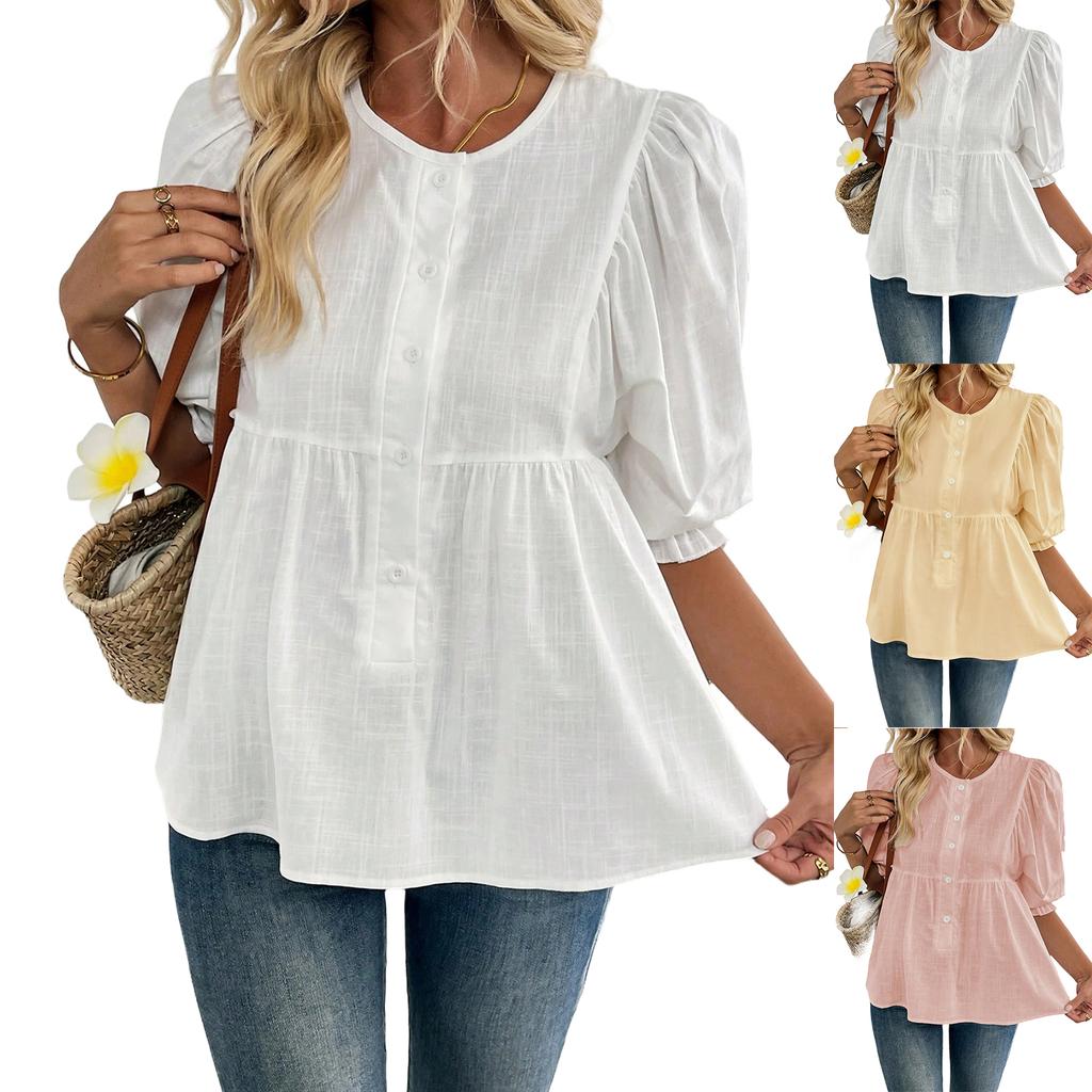 Damenmode Lässiges Kurzarm-Hemd mit Knopfleiste