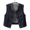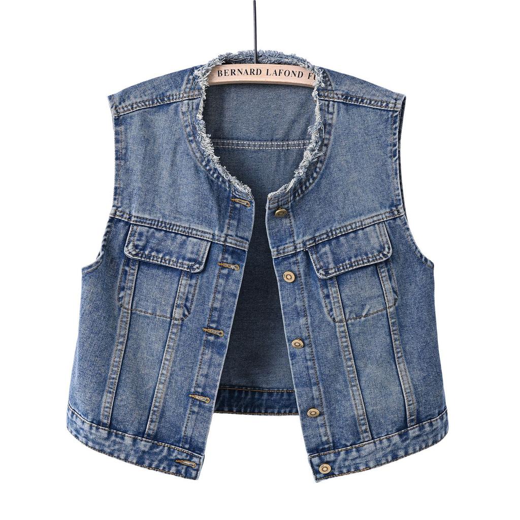 Rounded-neck Women's Denim Vest with Fringes, Short Blazer, Casual and Retro Fitted Sleeveless Pullover