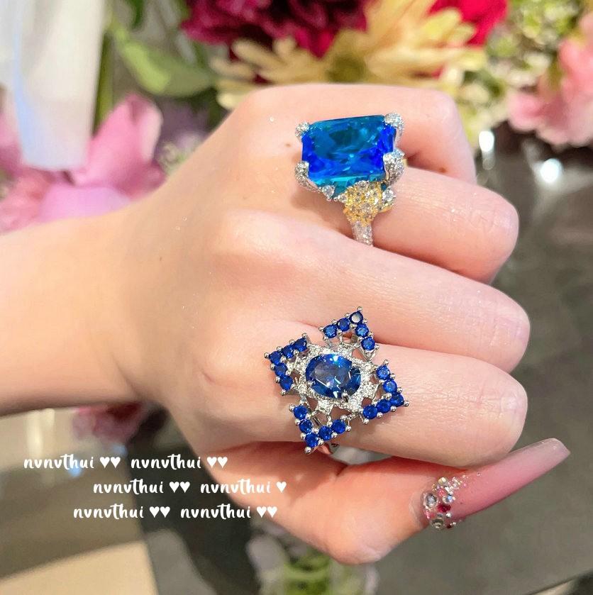 Madagascar Sapphire Ring, Rich Woman'S Happiness, Plated With 18K Gold, Water Blue Rectangular Zircon Ring.