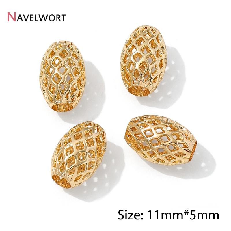 14K/18K Vergoldete Hohl-Abstandshalter-Perlen, Trennstück für Perlen, Ovale lose Perlen für Armbandherstellung Zubehör, Schmuckzubehör