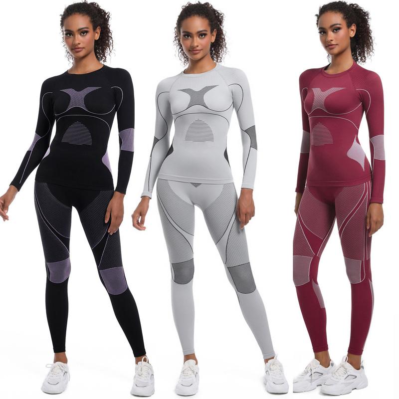 Women Girl Skiing Underwear Set Fitness Workout Thermal Gym Ski Snowboarding Sport Running Yoga Exercise Suit Long Johns 01