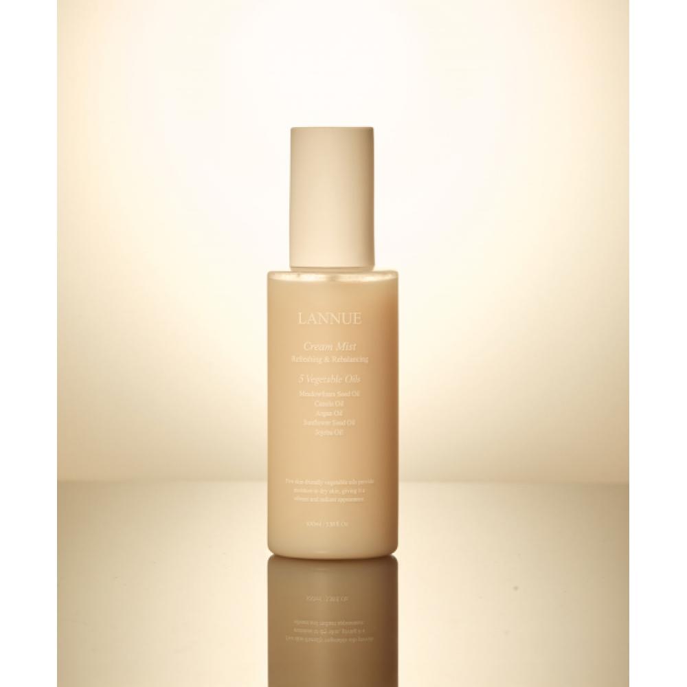 LANNUE [High Nutrient Moisture Glow] Cream Mist is a high-nutrient mist that provides a moist and radiant complexion. This product offers hydration and soothing effects to tired skin, and is particularly suitable for sensitive skin due to its hypoallergenic ingredients. It gives a dewy glow without greasiness and can be used over makeup without smudging, making it convenient for on-the-go use.