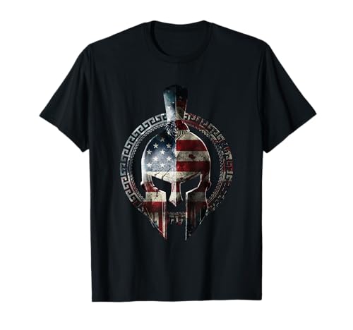 American Spartan Helmet USA Spartan Veteran Gladiator Flag T-Shirt