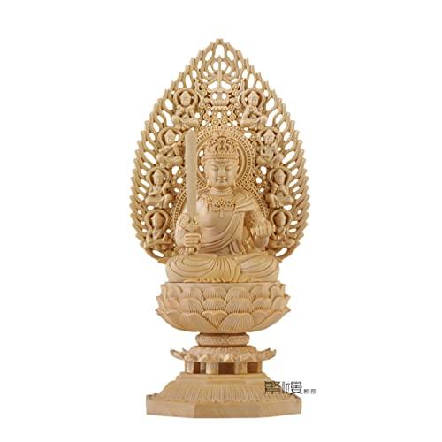 Manjusri Bodhisattva Buddhistische Altarfigur, Geschnitzt aus Zypressenholz mit fliegendem Himmelswesen-Heiligenschein und Lotussockel, 12 Tierkreiszeichen (Jahr t