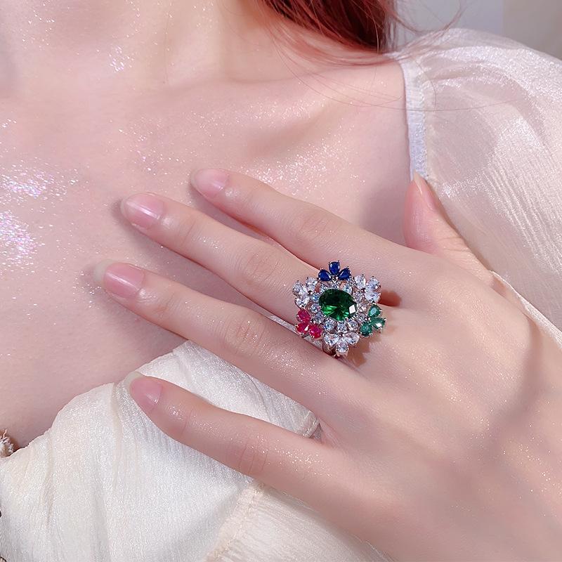 Ring Schwerindustrie Übertriebene Farbe Zirkon Blume Retro Schmuck Intarsien Damenmode