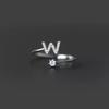 Fashion 925 Silver 26 Letter Ring Sparkling Diamond Zircon Open Ring Index Finger Your Ring Birthday Party Jewelry