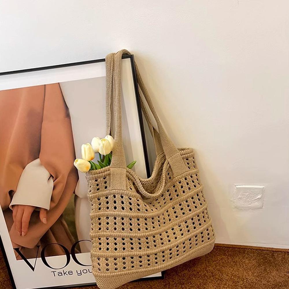 Große Kapazität Damen Strohgewebte Tasche Fauler Stil Tragetasche Einfache Gestrickte Handtasche Strand
