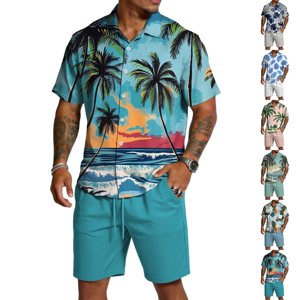 Herren Casual Leichtes Atmungsaktives Kurzarmhemd und Shorts Set