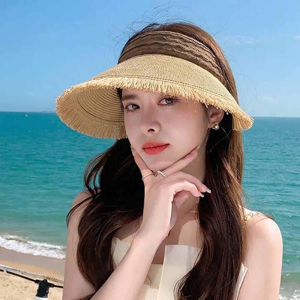 Atmungsaktive Stroh-Visierkappe Tragbare Sonnenkappe Leere Kopfbedeckung Breiter Rand Gewebte Kappe Reisen