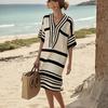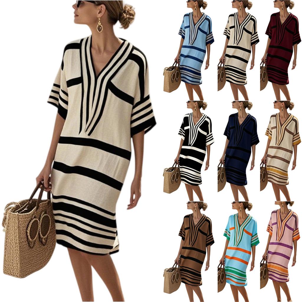 Damen Freizeit Bequem Baumwolle Leinen Kurzarm Tunika Strandkleider Mit Taschen