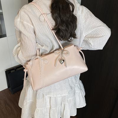 PU-Leder Herbst Winter Unterarmtasche mit Anhänger Französische Tote Bag Pendeltasche Handtasche Outdoor