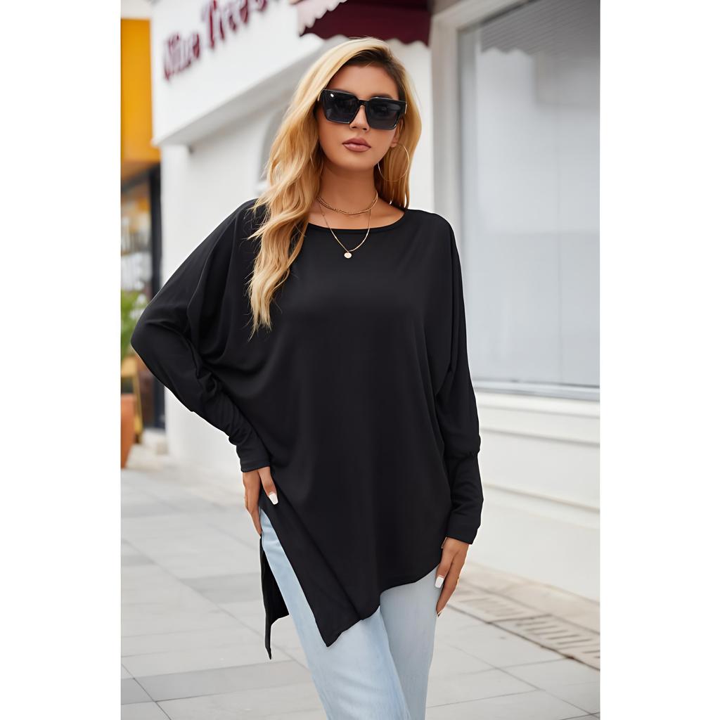 Frühling und Herbst Damen Bluse langärmeliges unregelmäßiges T-Shirt lässig lose Plus Size Tops