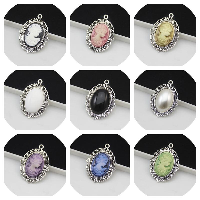 Antique Silver Oval Zinc Alloy Pendant With An Inlaid 18*25Mm Beauty Head Design, Hair Accessory Necklace, Diy Jewelry Accessory