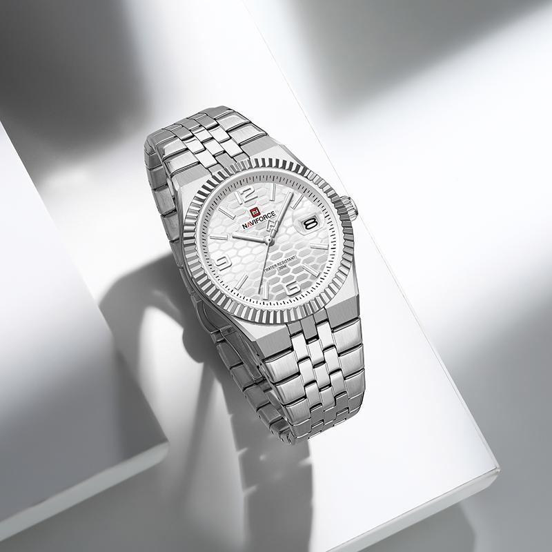 NAVIFORCE Original Men Quartz Watch Calendar Stainless Steel Strap Luminous Hands Honeycomb Dial Design Waterproof 3ATM Men Watch NF9277