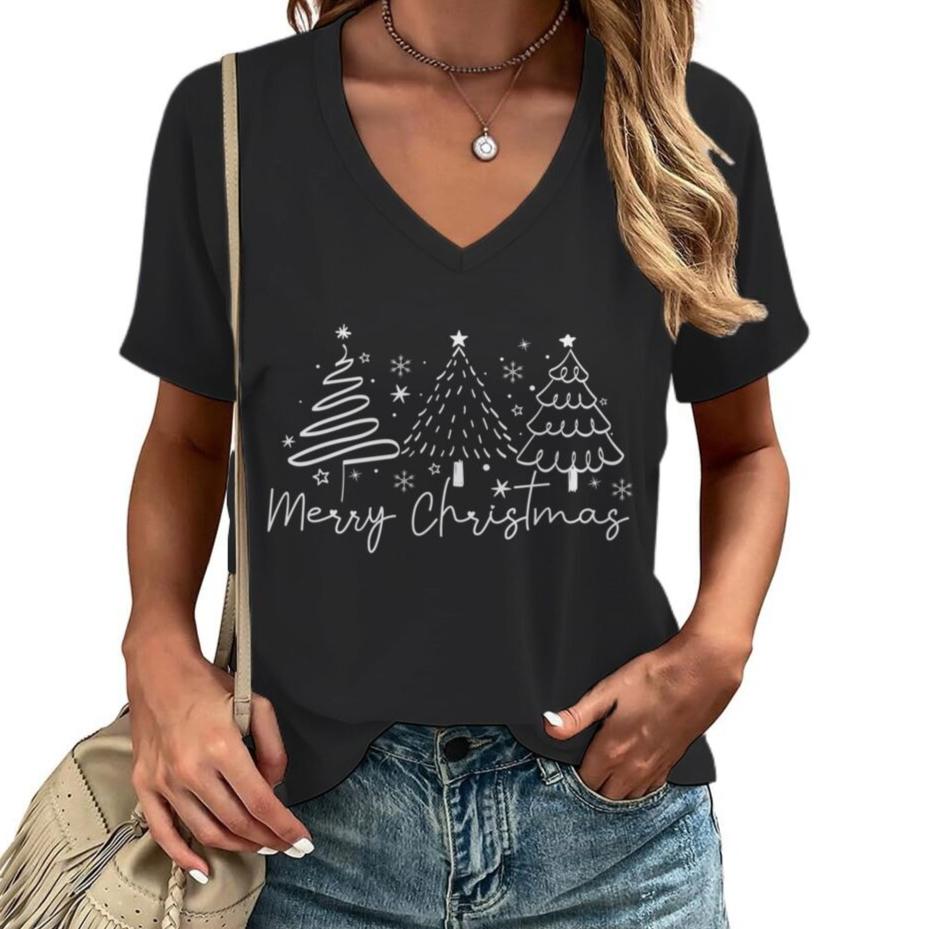 Merry Christmas Tree Trending Tshirts for Women Vneck Christmas Tree Design Holiday Clothes Funny Festive Fashion Casual Tops