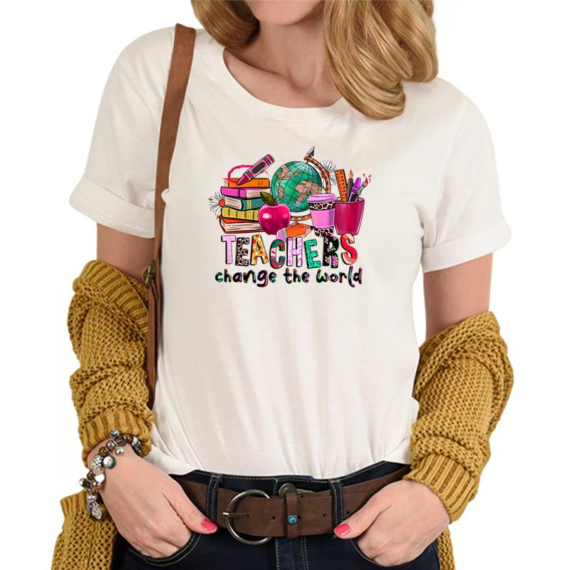 Teachers Change The World Print Tshirt FeUnisex Funny Teacher Gift TShirts Trendy World Design Casual Top Womens Clothing Sales