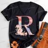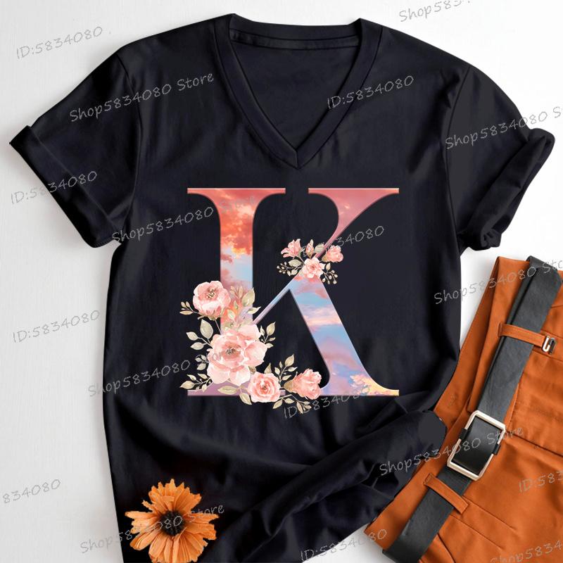 Womens Clothing Pink Flower Alphabet Classic Top Sky Alphabet Cartoon Tshirt FeUnisex Floral Letters A B C D Birthday Gift Shirt