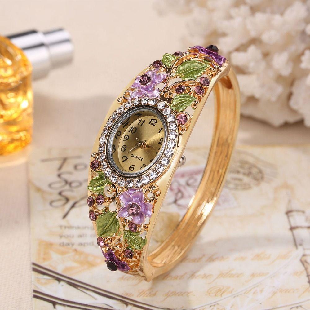 Rich In Flowers Ladies Wristwatch Rhinestone Bracelet Bracelet Watch Elegant Wear