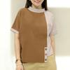 ZANZEA Women Casual Stand Collar Short Sleeve Patchwork Tee Shirts