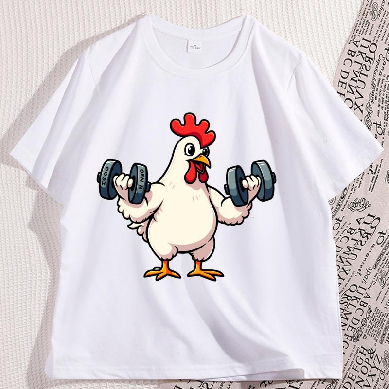 Chicken Workout Tshirt Cotton Casual Funny T Shirt Men Bodybuilding Tees Crewneck Short Sleeve Tshirt Breathable Streetwear