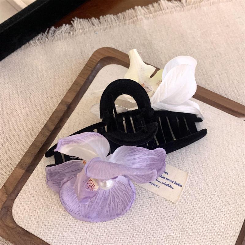 Early Spring New Fresh Silk Butterfly Orchid Pearl Flower Grab Clip Large Back Of Head Shark Girl Hair Accessories