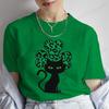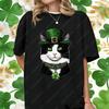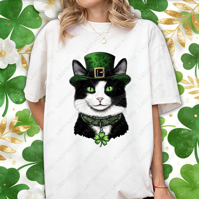 St Patricks Day Casual Unisex Cotton Shirts Lucky Clover Cute Tuxedo Cats Oneck Printed Tops Irish Women Ropa Mujer Cat Lover