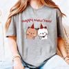 Happy New Year Bubu Dudu Emoticon Graphic Tshirt Trendy Fun New Year Tees Fashion Streetwear Cartoon Holiday Party Cotton Tees