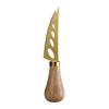 Gold Stainless Steel Cheese Knife Set with Rubber Wood Handle - Includes Cheese Knife, Tableware Knife, and Fork