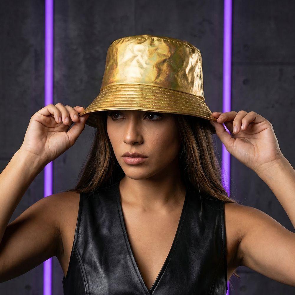 Leder Leuchtender Eimerhut Einseitig Glänzend Sonnenhut Laser Regenbogen Fischerhut Outdoor Reisen