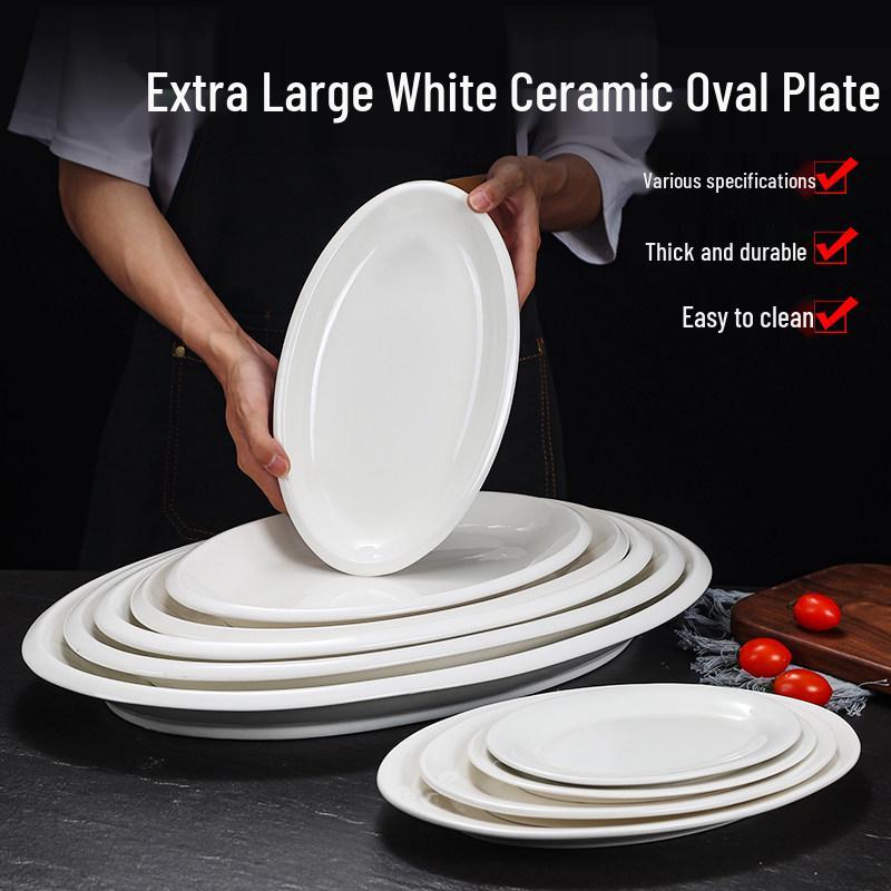 Hui You Da Große ovale Keramik-Fischplatte (14/16/18 Zoll) - Verdickter reinweißer Teller für Hotels und Restaurants